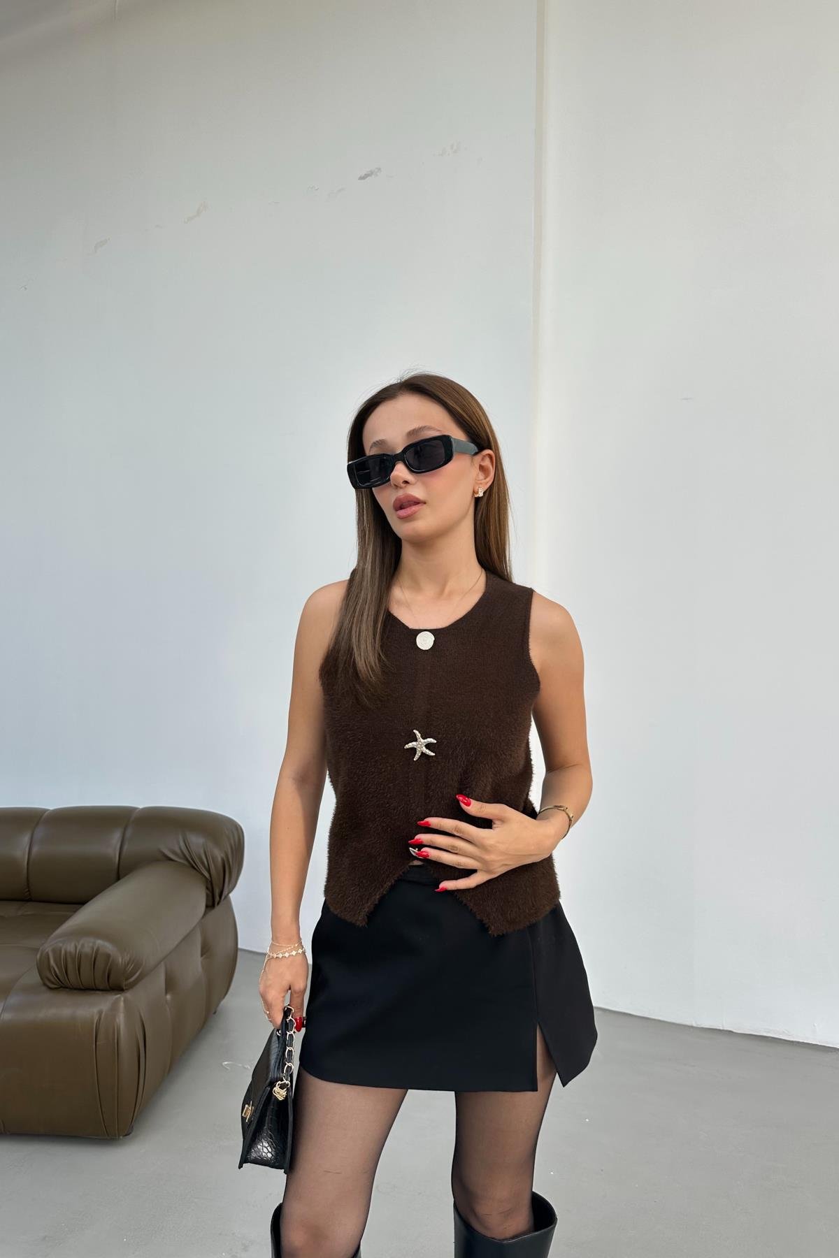 Aksesuar Düğmeli Triko Yelek Kahve (50223)