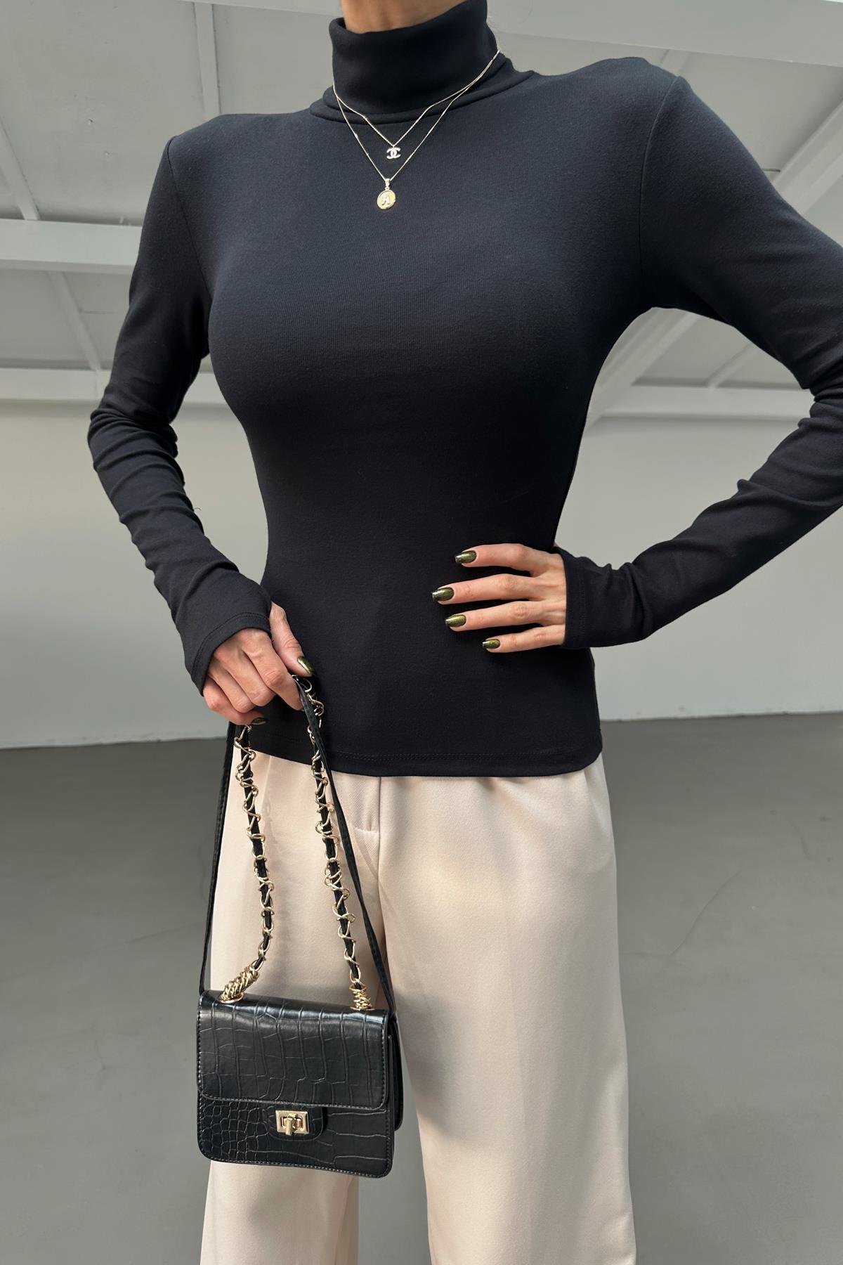 Balıkçı Yaka Uzun Kol Body Siyah (10970)