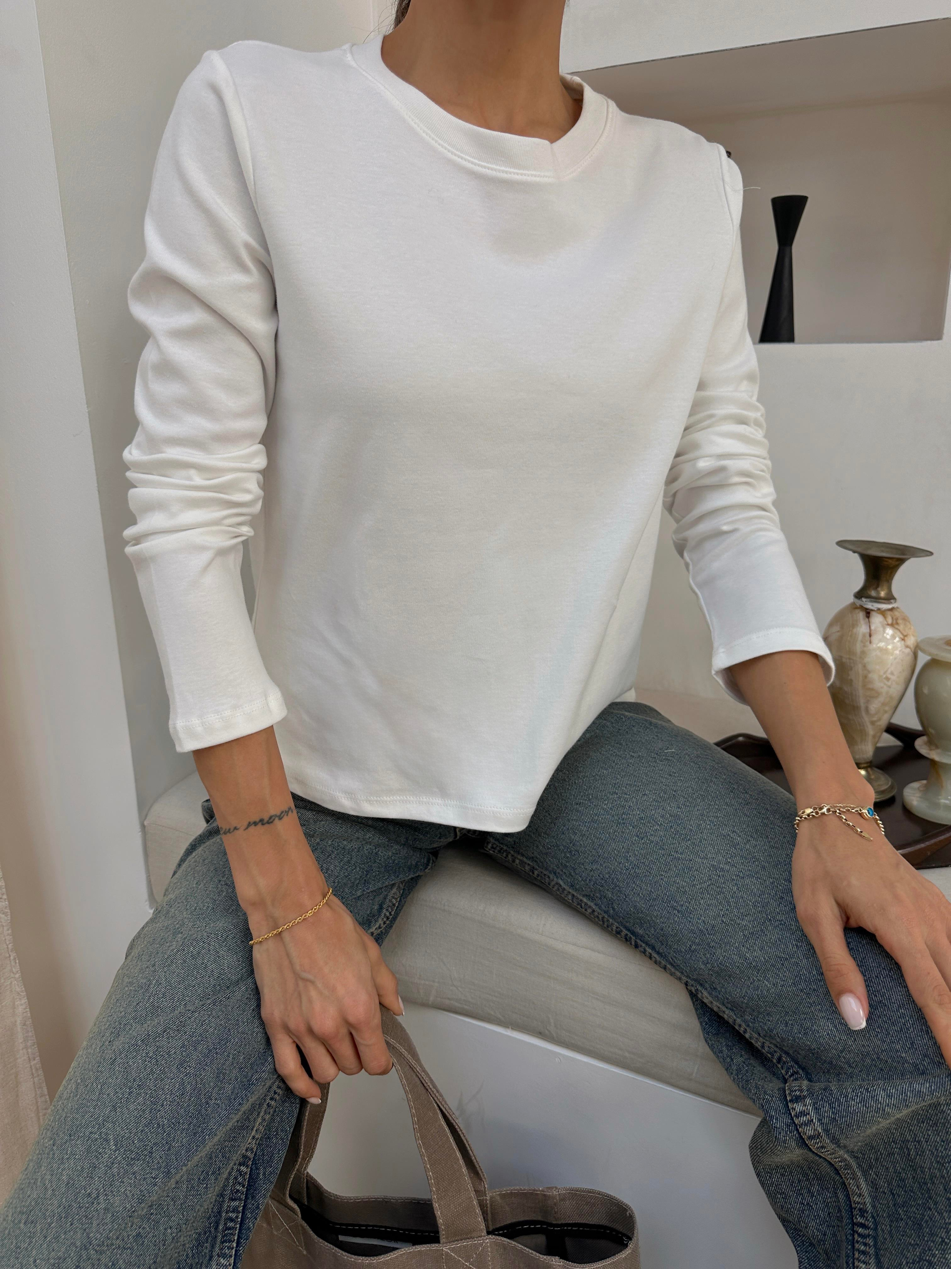 Bisiklet Yaka Penye Bluz Beyaz (10967)