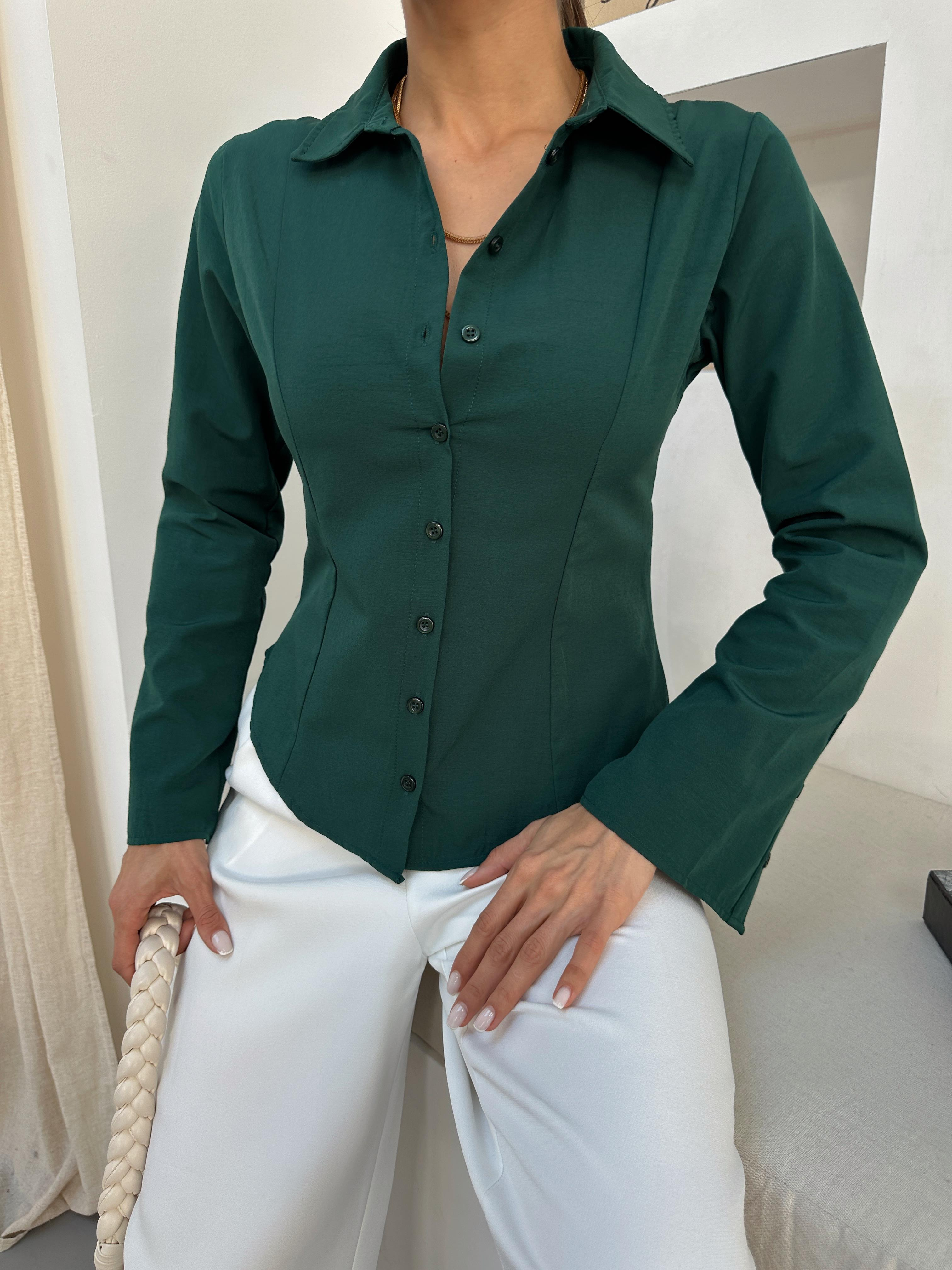 Çan Kollu Poplin Gömlek Zümrüt Yeşili (70890)