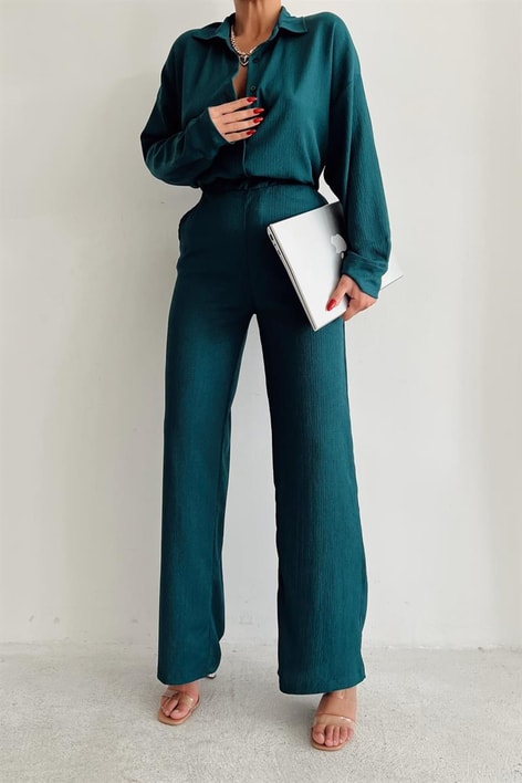 Comfy Piliseli Gömlek Takım Petrol Mavisi (80362)