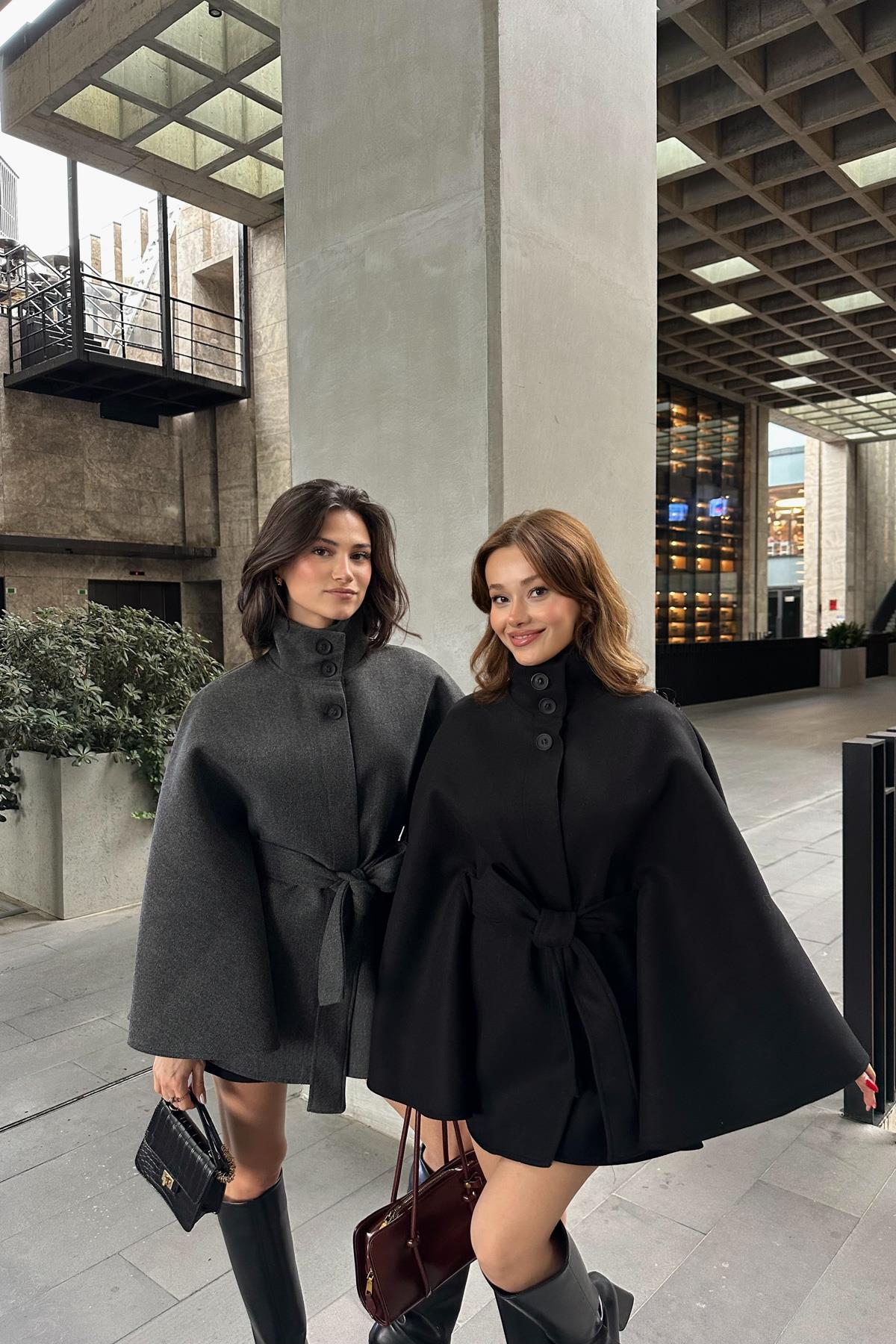 Dik Yaka Kaşe Panço Siyah (17665)