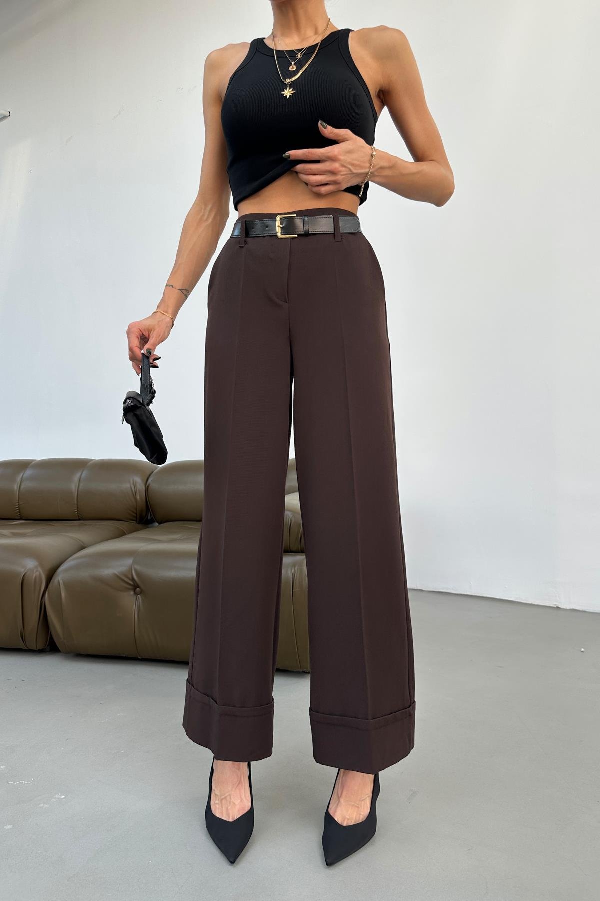 Duble Paça Kemerli Pantolon Kahve (110533)