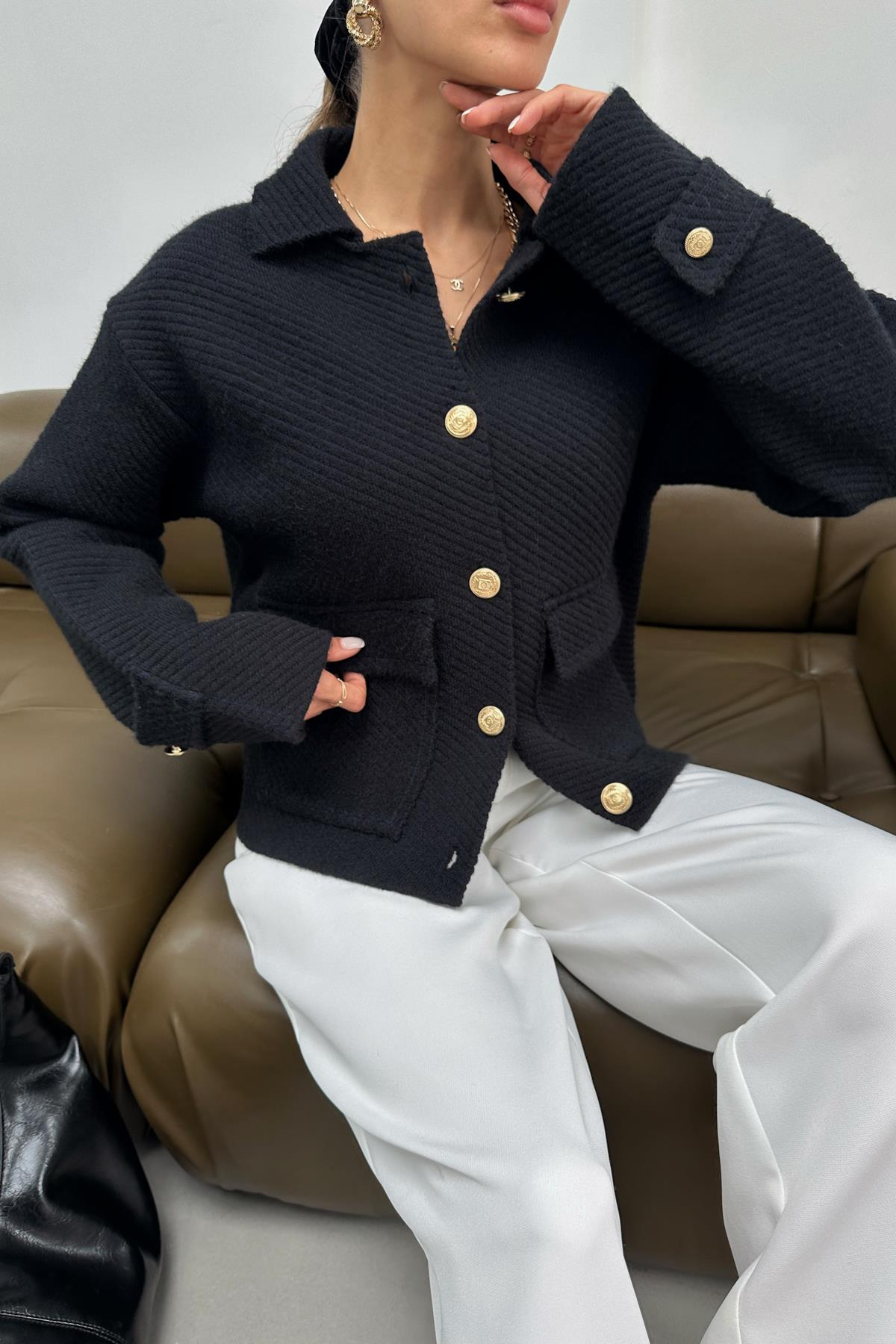 Kapak Cepli Gold Düğmeli Ceket Siyah (17663)