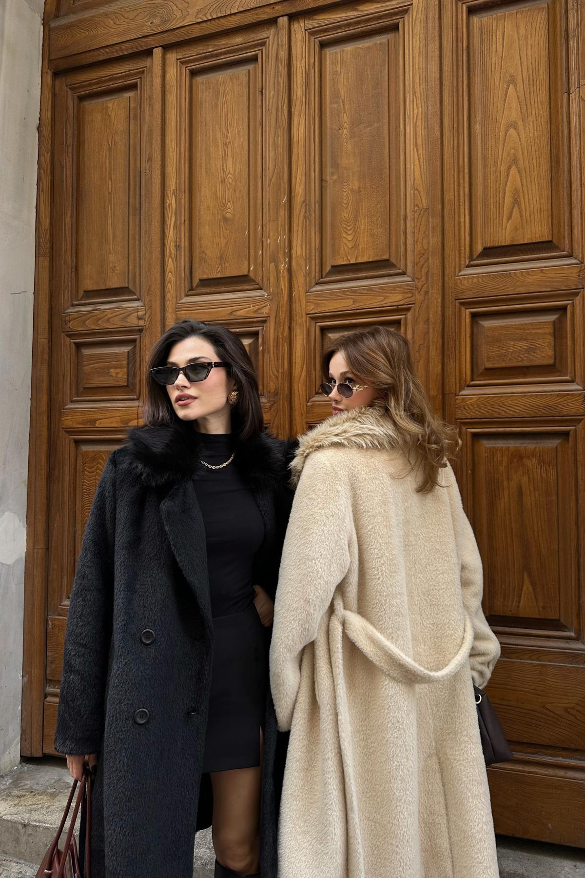 Kürk Yaka Peluş Kaban Siyah (19187)