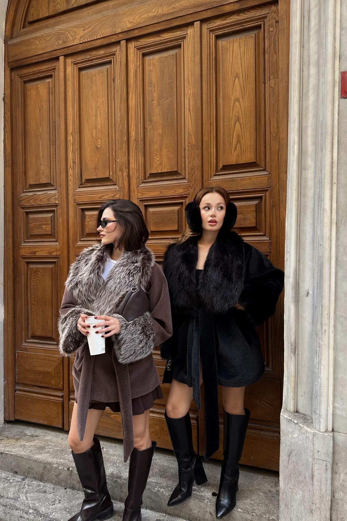 Kürk Yaka Premium Kaban KAHVE (19193)