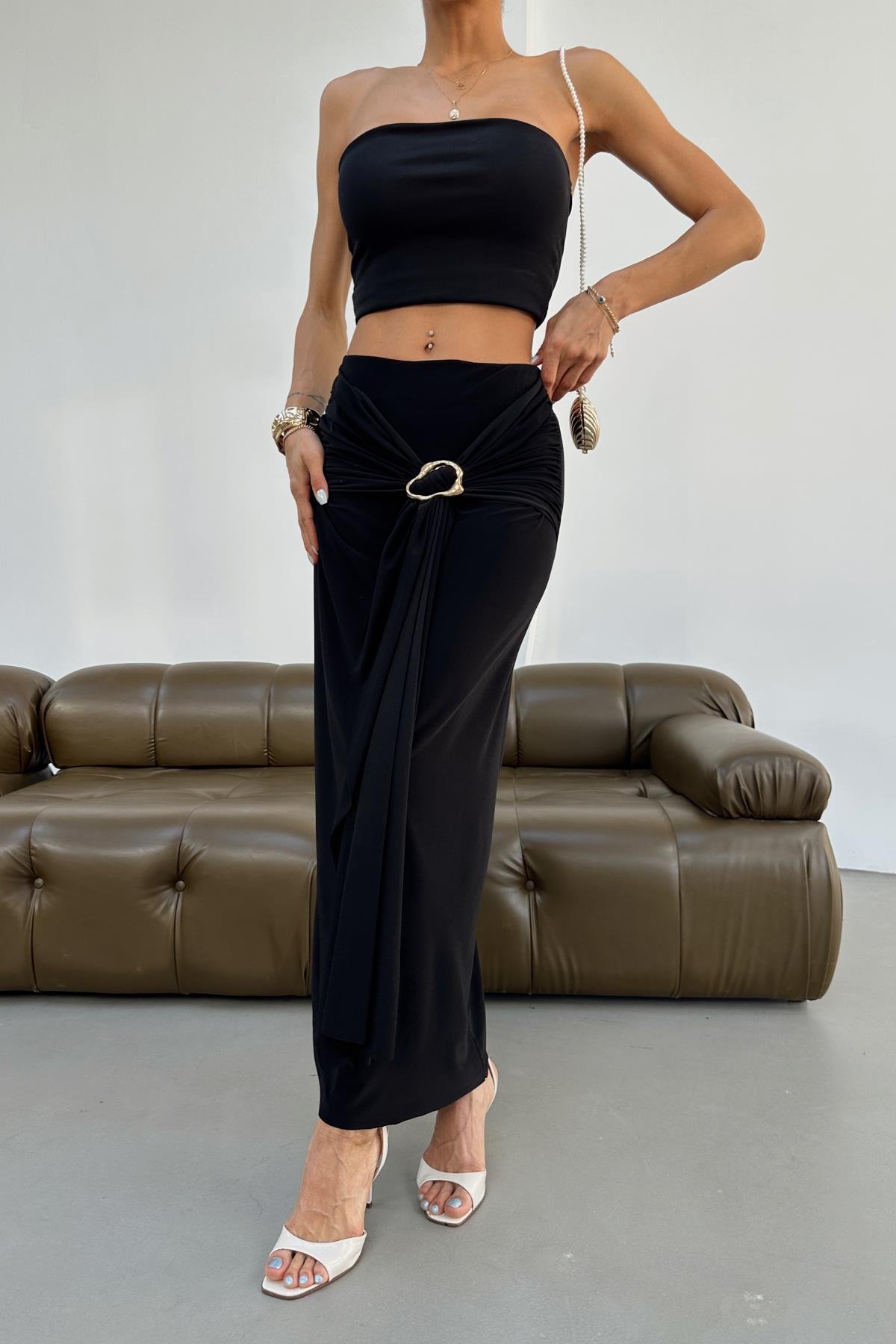 Kuşaklı Toka Detay Sendy Etek Siyah