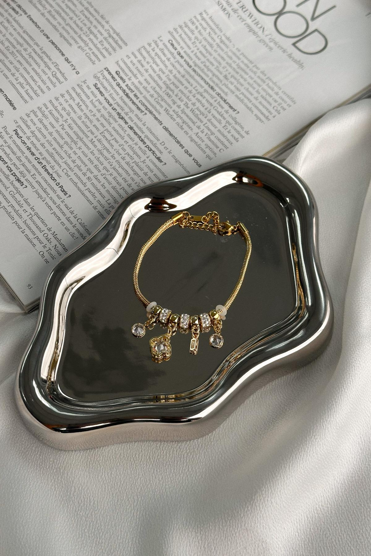 Sarkma Pırlantalı Bileklik Gold