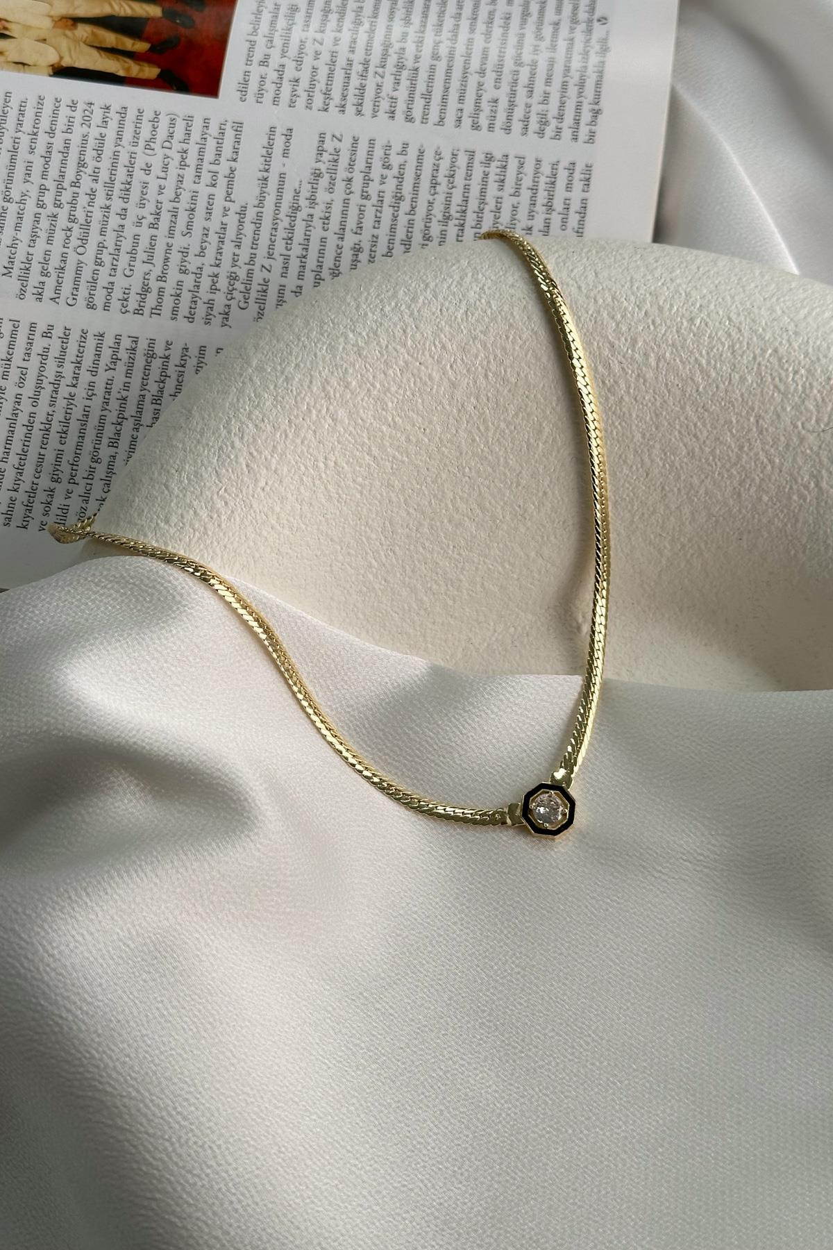Siyah Taşlı Zincir Kolye Gold (37860)